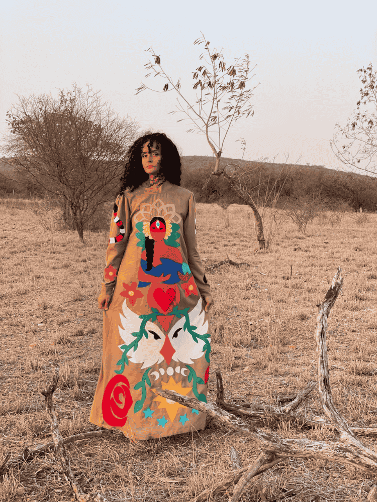 Adriana Meira nasceu em Brumado, interior da Bahia, e carrega o Sertão como grande norte de sua criação. Estilista e figurinista, formou-se em Gestão e Design de Moda em Salvador, onde começou sua trajetória no universo da moda autoral e das artes cênicas. Depois de colaborar com marcas como Maria Filó, Huis Clos e Adriana Barra, fundou em São Paulo o Adriana Meira Atelier, marca que traduz em roupas a força e a poesia da cultura popular nordestina. Seus modelos são costurados com rendas, bordados, apliques e memória afetiva. Aparecem em tecidos como algodão, linho, couro, viscose e até neoprene — sempre em coleções autorais, de tiragem limitada, feitas com muito cuidado e intenção.